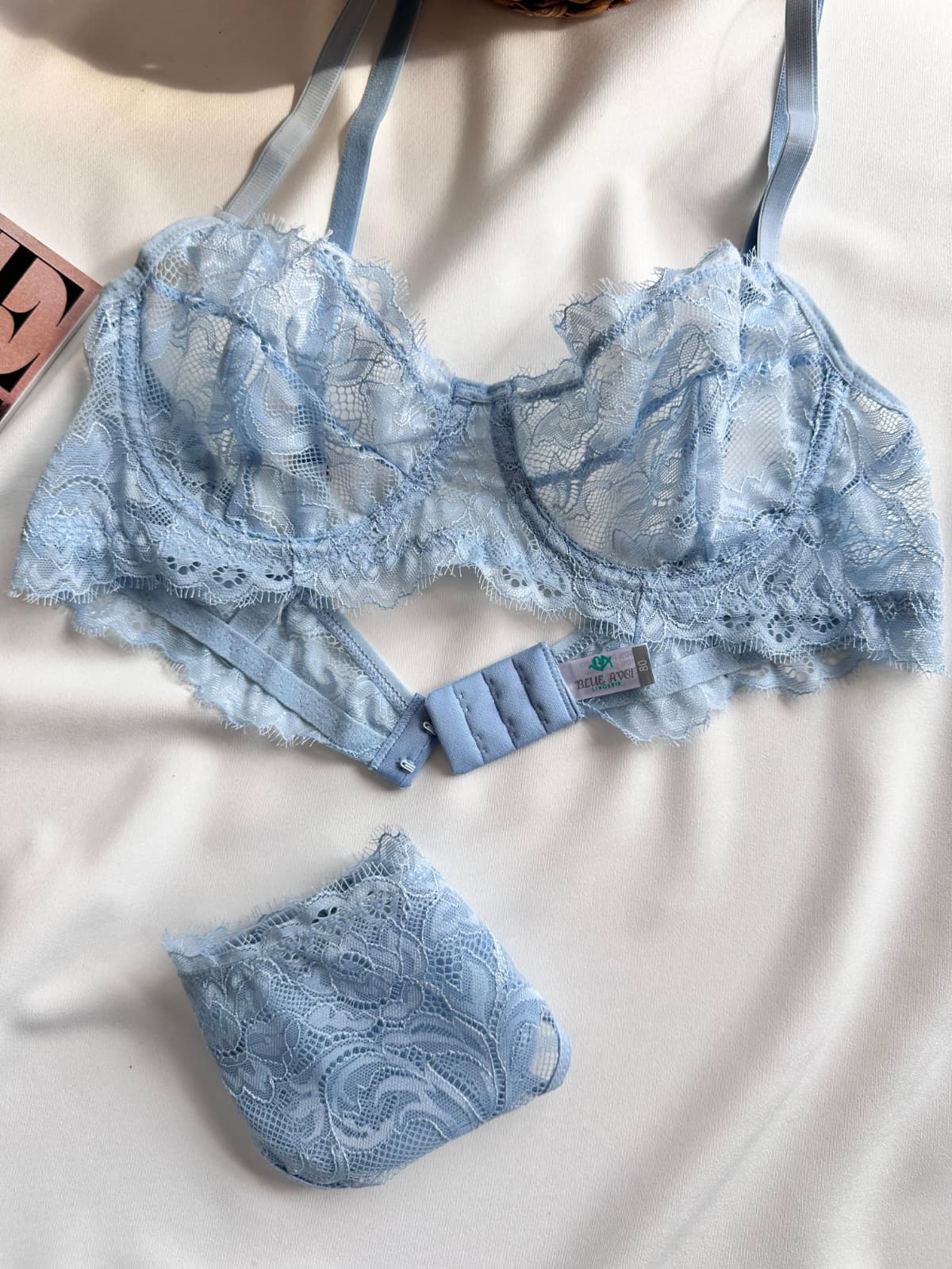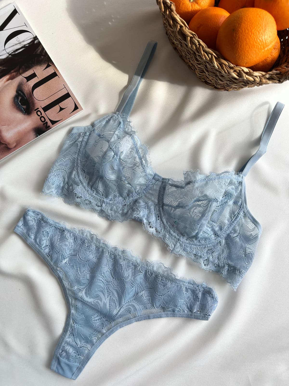 Açık Mavi Dantelli Balenli Balkonet Sütyen Takımı
