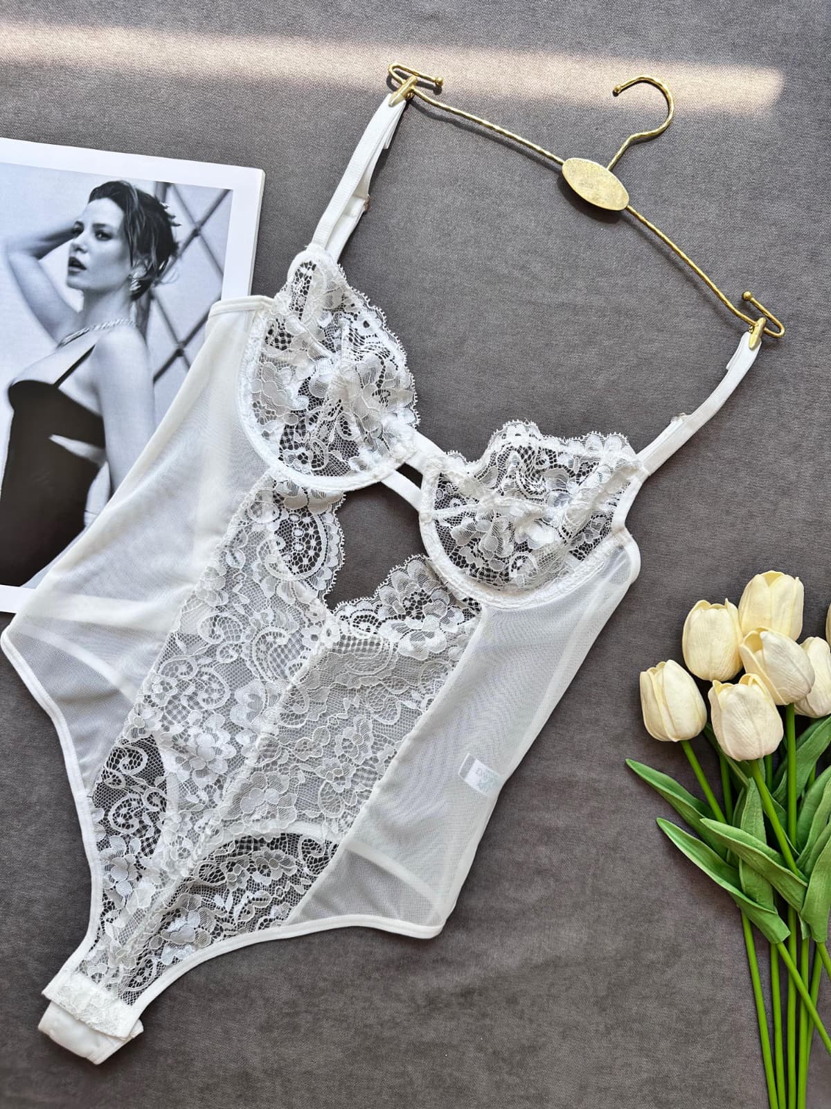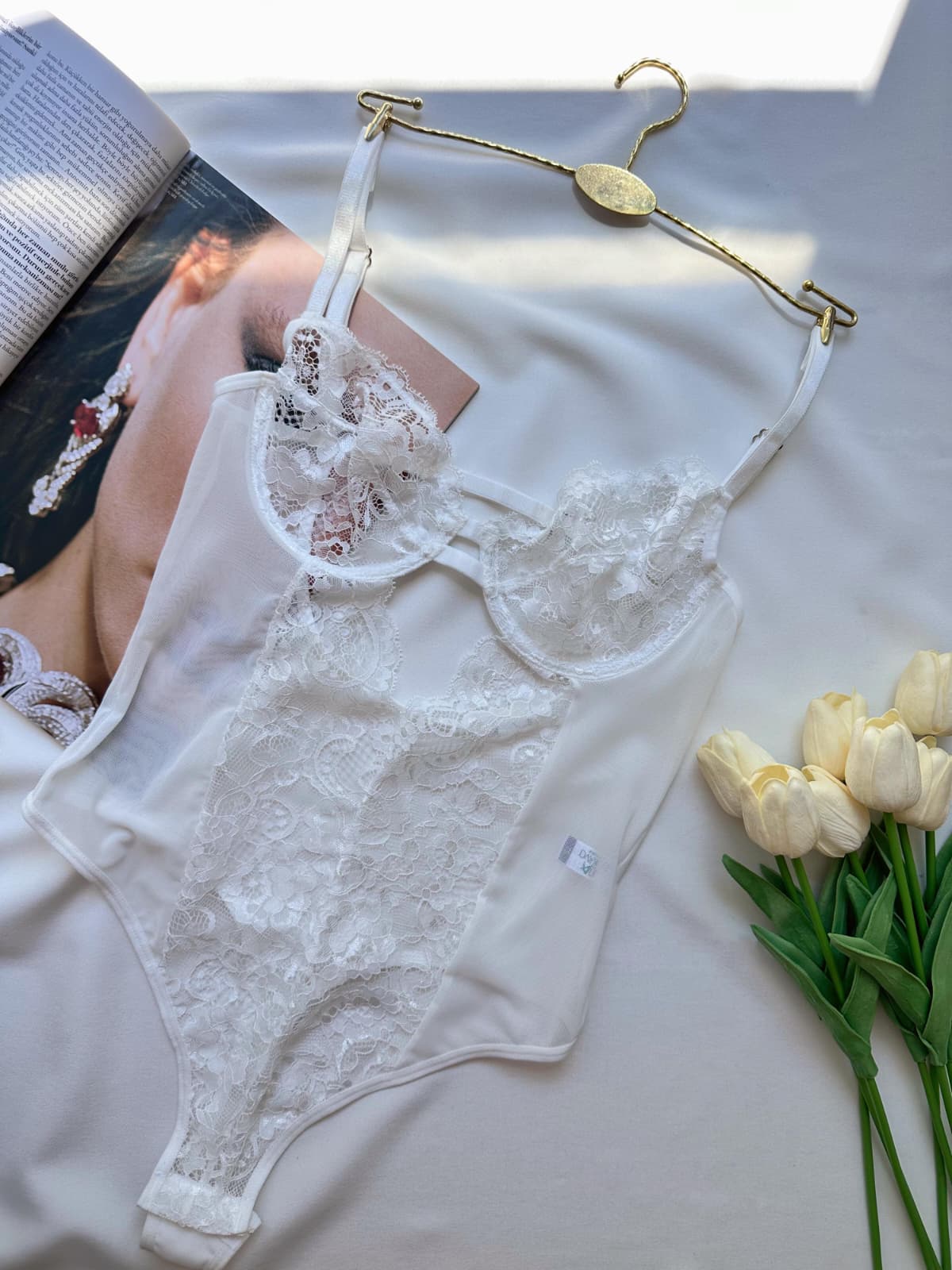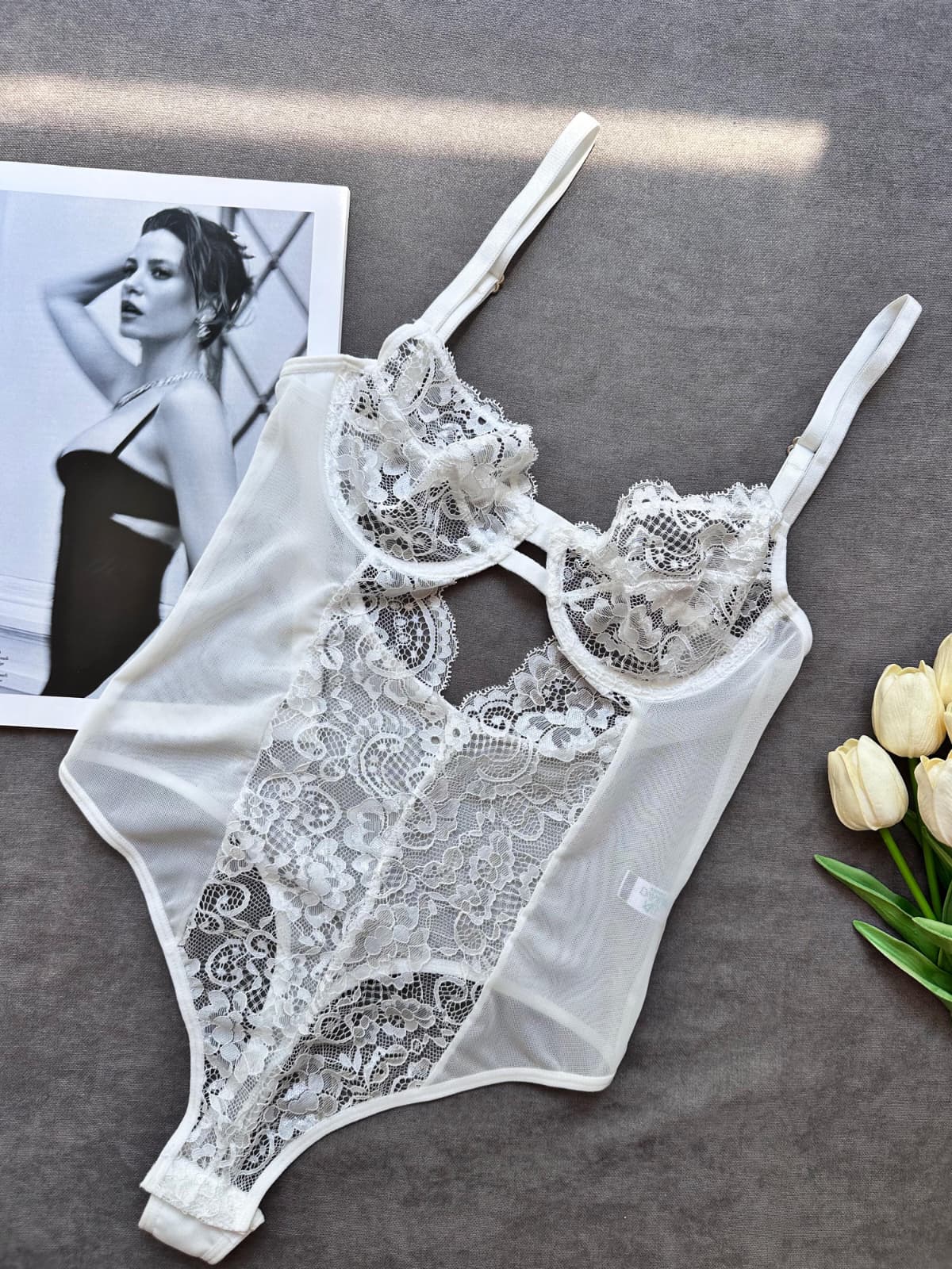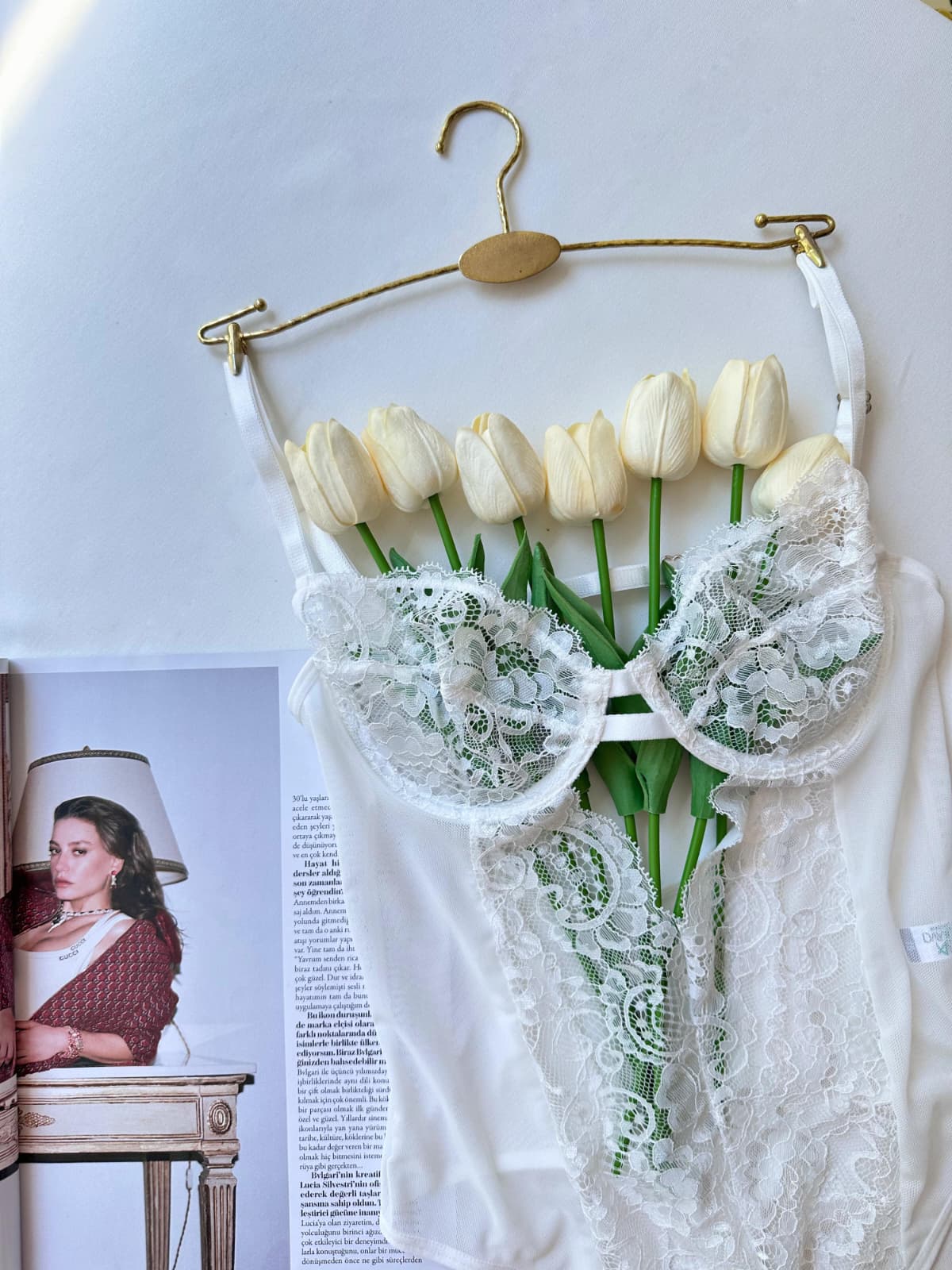 Beyaz Dantelli Balenli Balkonet Bodysuit