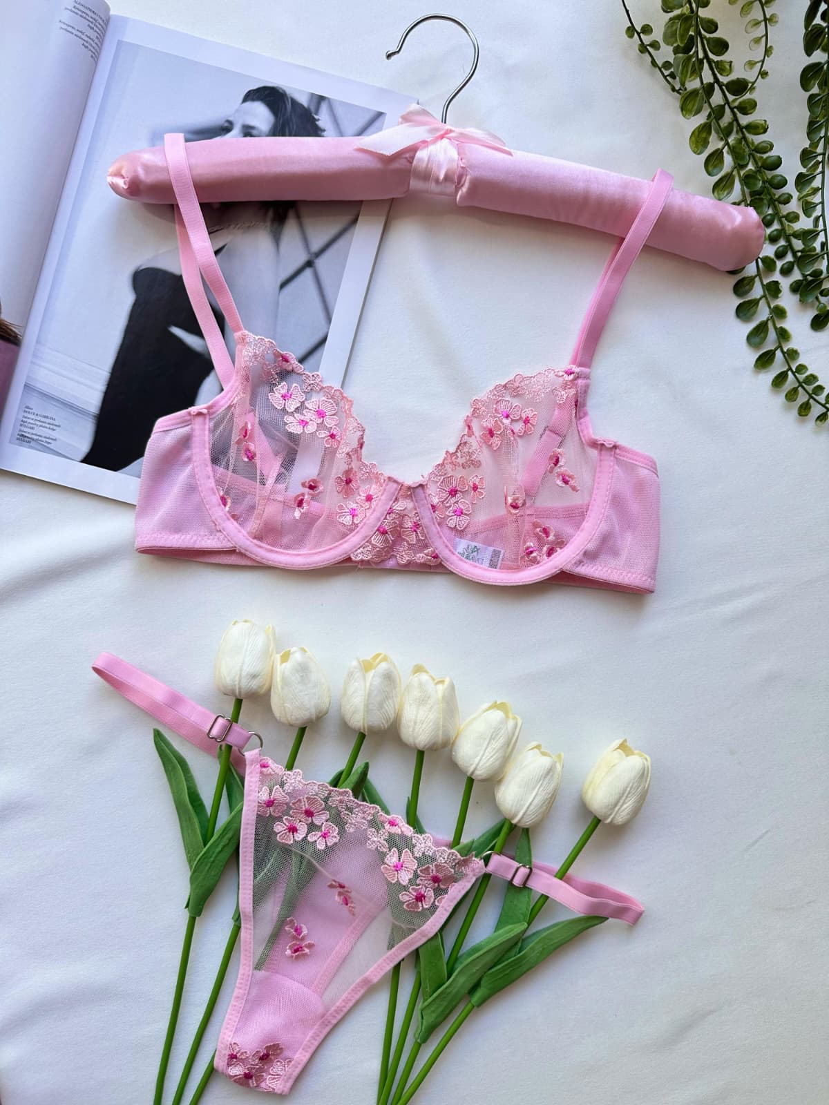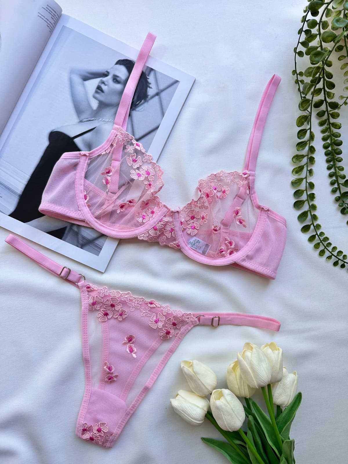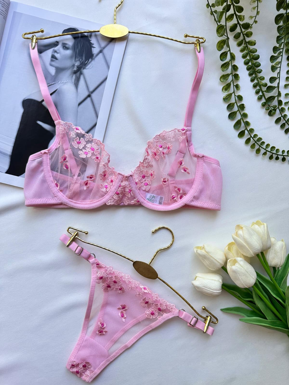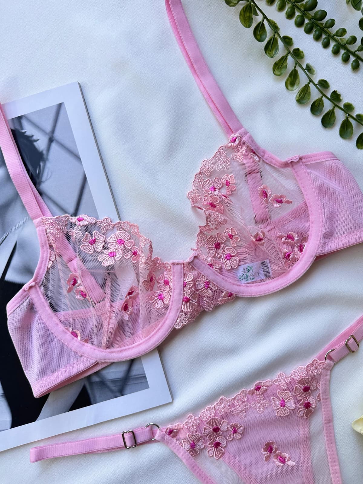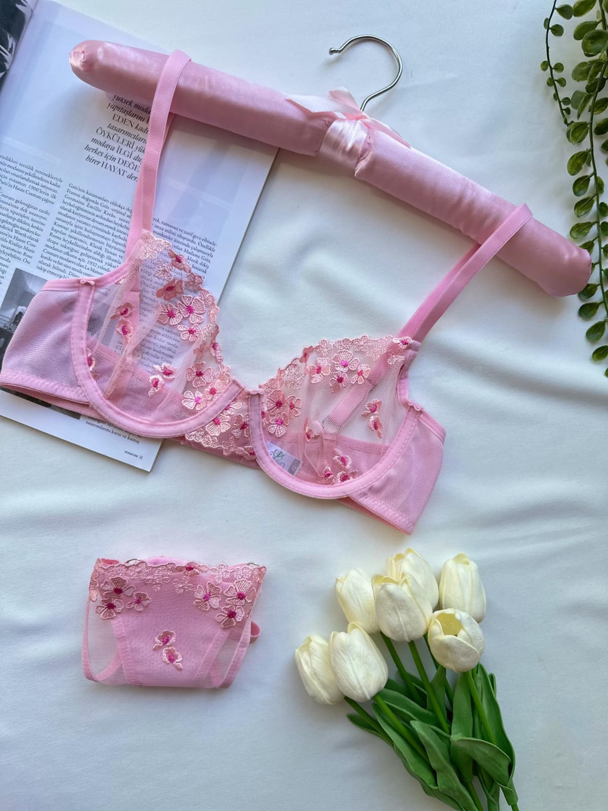 Pembe Çiçekli Balenli Balkonet Sütyen Takımı P3