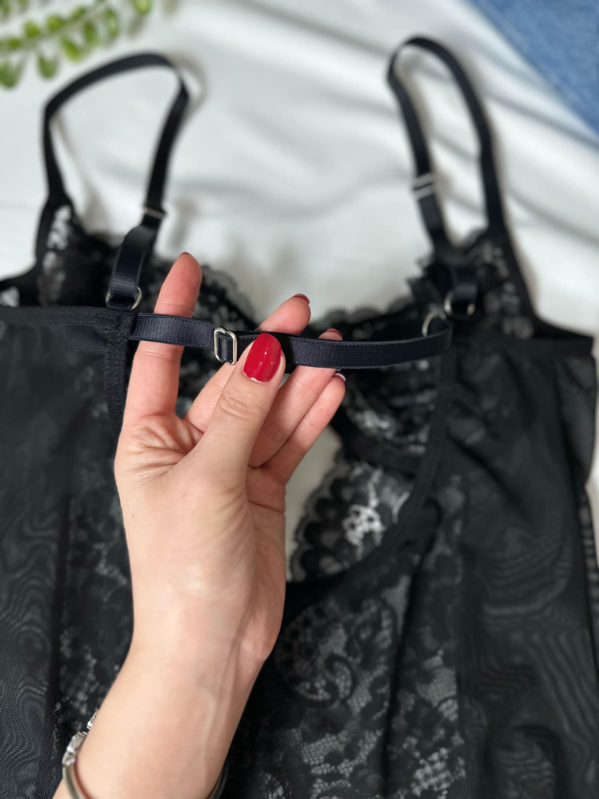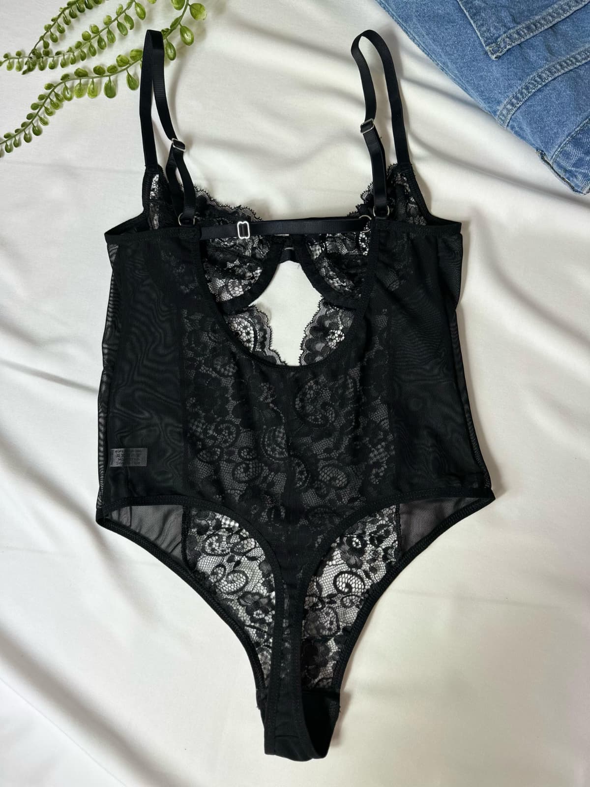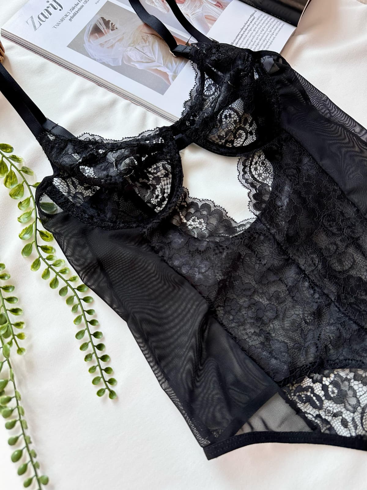 Siyah Dantelli Balenli Balkonet Bodysuit
