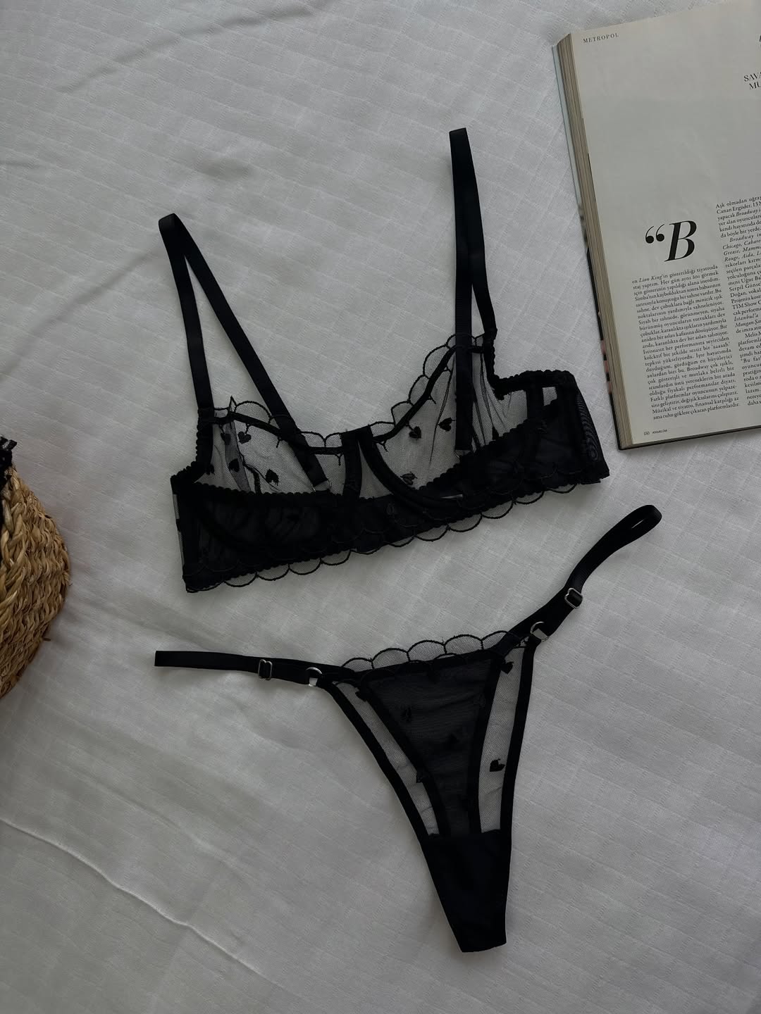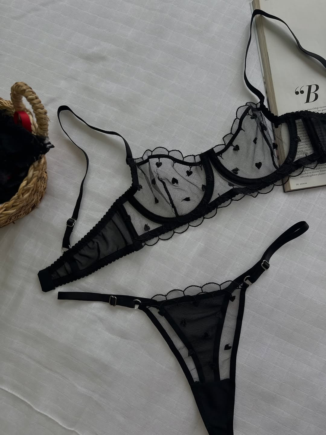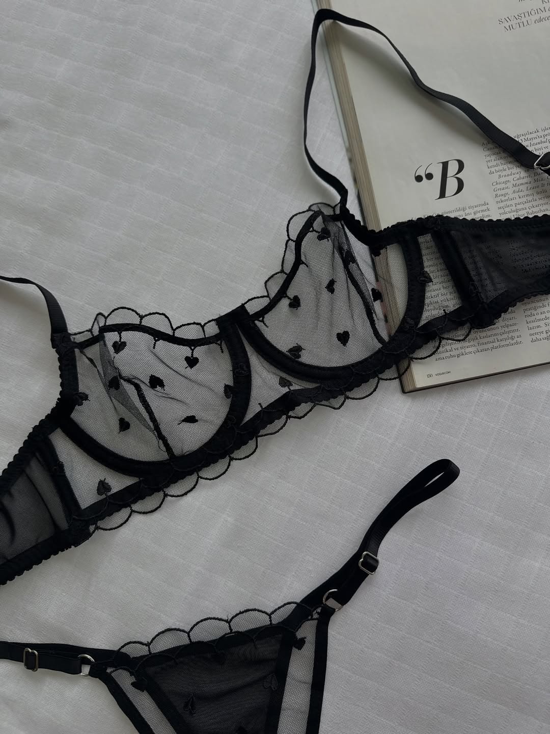 Siyah Kalpli Dantelli Balenli Balkonet Sütyen Takımı